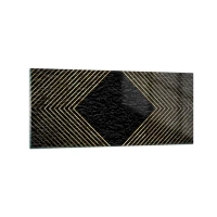 Quadro su vetro - Sfondo nero con motivo geometrico di linee dorate - 120x50cm - Geometria in stile glamour - Decorazione murale moderna per soggiorno e camera da letto ARTTOR