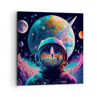 Quadro su tela - Stampe su Tela - Astronauta nello spazio con un paesaggio planetario colorato - 100x70cm - I filosofi non l'avevano pensato - Decorazione murale moderna per soggiorno e camera da letto ARTTOR