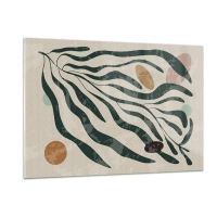 Quadro su vetro - Forme organiche in verde su sfondo beige - 120x80cm - Tra il verde - Decorazione murale moderna per soggiorno e camera da letto ARTTOR