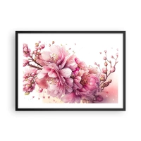 Poster in cornice nera - Delicati fiori di ciliegio in piena fioritura su uno sfondo chiaro - 70x50cm - Fiore di ciliegio - Decorazione murale moderna per soggiorno e camera da letto ARTTOR
