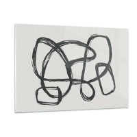 Quadro su vetro - Anelli e linee nere formano una composizione astratta su uno sfondo bianco. - 120x80cm - Astrazione aggrovigliata - Decorazione murale moderna per soggiorno e camera da letto ARTTOR