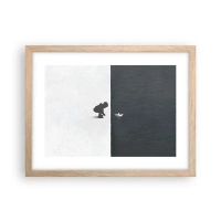 Poster in cornice nera - La figura di un bambino con una barchetta di carta su uno sfondo di metà contrastanti - 100x70cm - La grande spedizione - Decorazione murale moderna per soggiorno e camera da letto ARTTOR