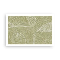Poster - Linee verdi e bianche in una composizione astratta - 100x70cm - Astrazione intricata in bianco - Decorazione murale moderna per soggiorno e camera da letto ARTTOR