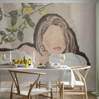 Fotomurali Autoadesivo Deluxe Sticker - Bellezza del sud - Donna, Limoni, Minimalismo - 200x140 cm