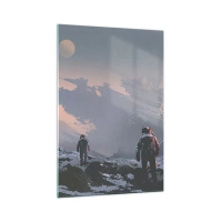 Quadro su vetro - Astronauti su un pianeta alieno con un relitto di astronave - 70x100cm - Sotto una stella sconosciuta - Decorazione murale moderna per soggiorno e camera da letto ARTTOR