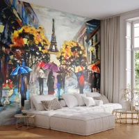 Fotomurali Standard Eco - Parigi autunnale sotto la pioggia con ombrelli colorati - 100x70cm - Bella soprattutto d'autunno - Decorazione murale moderna per soggiorno e camera da letto ARTTOR