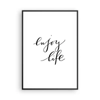 Quadro su vetro - La citazione "goditi la vita" in calligrafia nera su sfondo bianco - 70x100cm - Niente da aggiungere... - Decorazione murale moderna per soggiorno e camera da letto ARTTOR