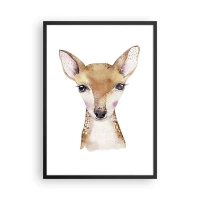 Poster in cornice nera - Ritratto ad acquerello di un giovane cerbiatto su sfondo bianco - 50x70cm - La natura dell'innocenza - Decorazione murale moderna per soggiorno e camera da letto ARTTOR