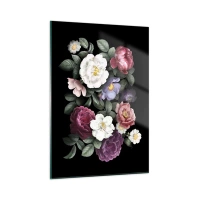 Quadro su vetro - Composizione floreale con peonie su sfondo nero - 50x70cm - Dal giardino inglese - Decorazione murale moderna per soggiorno e camera da letto ARTTOR