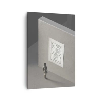 Quadro su vetro - Una figura in un labirinto che guarda una mappa appesa - 70x100cm - Ma dove mi trovo? - Decorazione murale moderna per soggiorno e camera da letto ARTTOR