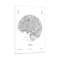 Quadro su vetro - Mappa della città di Oslo in stile grafico in bianco e nero - 50x70cm - Anatomia di Oslo - Decorazione murale moderna per soggiorno e camera da letto ARTTOR