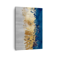 Quadro su tela - Stampe su Tela - Una composizione astratta nei toni dell'oro e del blu navy. - 70x100cm - Composizione moderna con bagliore - Decorazione murale moderna per soggiorno e camera da letto ARTTOR