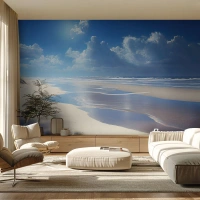 Fotomurali Standard Eco - Un'ampia spiaggia sabbiosa sotto un cielo azzurro - 100x70cm - Vacanze in paradiso - Decorazione murale moderna per soggiorno e camera da letto ARTTOR