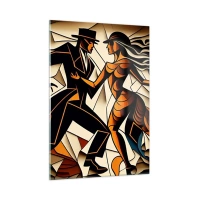 Quadro su vetro - Una coppia stilizzata che danza in una forma astratta dinamica. - 50x70cm - La danza della passione - Decorazione murale moderna per soggiorno e camera da letto ARTTOR
