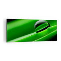 Quadro su tela - Stampe su Tela - Primo piano di una goccia di rugiada su una foglia verde - 120x50cm - La vita da vicino - Decorazione murale moderna per soggiorno e camera da letto ARTTOR