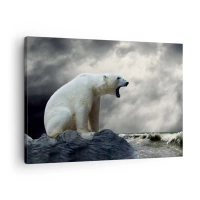Fotomurali Premium Canvas - Un orso polare sulle rocce sopra un mare in tempesta - 100x70cm - Il re solitario dell'Artide - Decorazione murale moderna per soggiorno e camera da letto ARTTOR
