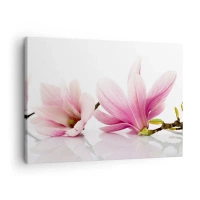 Quadro su tela - Stampe su Tela - Delicate magnolie rosa su sfondo bianco - 70x50cm - Delicati come un soffio di primavera - Decorazione murale moderna per soggiorno e camera da letto ARTTOR