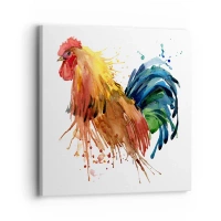 Orologio da parete - Orologio in Vetro - Gallo colorato in stile acquerello - 30x30cm - Abito reale, orgoglio reale - Decorazione murale moderna per soggiorno e camera da letto ARTTOR