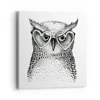 Orologio da parete - Orologio in Vetro - Grafica elegante di un gufo che indossa occhiali a forma di cuore - 30x30cm - Saggiamente e con amore - Decorazione murale moderna per soggiorno e camera da letto ARTTOR