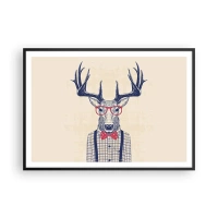 Poster in cornice nera - Grafica stilizzata di un cervo con occhiali e papillon - 100x70cm - Divertente stravaganza - Decorazione murale moderna per soggiorno e camera da letto ARTTOR