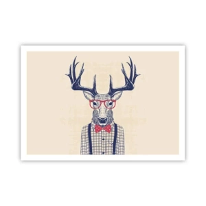 Poster - Grafica stilizzata di un cervo con occhiali e papillon - 100x70cm - Divertente stravaganza - Decorazione murale moderna per soggiorno e camera da letto ARTTOR