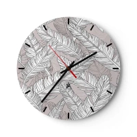 Orologio da parete - Orologio in Vetro - Foglie di banano bianche e nere su sfondo chiaro - 30x30cm - Vortice di piume - Decorazione murale moderna per soggiorno, cucina e camera da letto ARTTOR