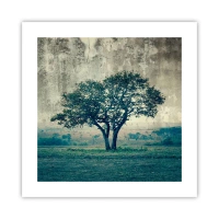 Poster in cornice rovere chiaro - Un melo su un prato blu? - 40x40 cm
