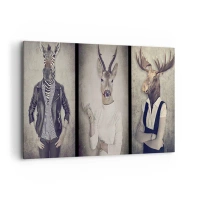 Quadro su tela - Stampe su Tela - Un trittico con figure di animali in abiti umani su uno sfondo artistico - 120x80cm - Facciamo parlare i gesti - Decorazione murale moderna per soggiorno e camera da letto ARTTOR