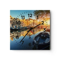 Orologio da parete - Orologio in Vetro - L'alba ad Amsterdam - 30x30 cm