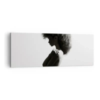 Quadro su tela - Stampe su Tela - Una sottile silhouette di una donna in tonalità di bianco e nero su uno sfondo chiaro - 140x50cm - Come un fiore su un gambo snello - Decorazione murale moderna per soggiorno e camera da letto ARTTOR