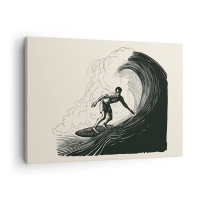 Fotomurali Premium Canvas - Grafica in bianco e nero di un surfista che cavalca un'onda - 100x70cm - Il re delle onde - Decorazione murale moderna per soggiorno e camera da letto ARTTOR