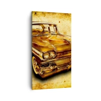 Quadro su tela - Stampe su Tela - Un'auto retrò classica dorata su uno sfondo vintage con effetto invecchiato. - 50x70cm - La bellezza eterna della classicità - Decorazione murale moderna per soggiorno e camera da letto ARTTOR
