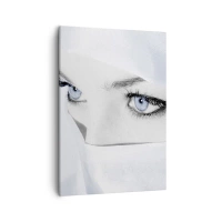 Quadro su tela - Stampe su Tela - Ritratto di una donna con gli occhi azzurri nascosti dietro un velo bianco - 50x70cm - Direttamente dalle mille e una notte - Decorazione murale moderna per soggiorno e camera da letto ARTTOR
