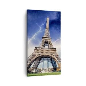 Quadro su tela - Stampe su Tela - La Torre Eiffel con un cielo tempestoso e fulmini sullo sfondo - 50x70cm - La signora delle tempeste - Decorazione murale moderna per soggiorno e camera da letto ARTTOR