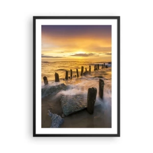 Poster in cornice nera - Tramonto sul mare con pali di legno sulla spiaggia - 50x70cm - La bellezza selvatica del Baltico - Decorazione murale moderna per soggiorno e camera da letto ARTTOR