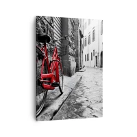 Quadro su tela - Stampe su Tela - Bicicletta rossa in una strada bianca e nera - 50x70cm - La vera bellezza non invecchia - Decorazione murale moderna per soggiorno e camera da letto ARTTOR