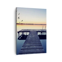 Quadro su tela - Stampe su Tela - Molo di legno su un lago all'alba con uccelli - 50x70cm - È stata una buona giornata - Decorazione murale moderna per soggiorno e camera da letto ARTTOR