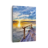 Quadro su tela - Stampe su Tela - Molo di legno sul lago al tramonto - 50x70cm - Il vento è andato a dormire - Decorazione murale moderna per soggiorno e camera da letto ARTTOR