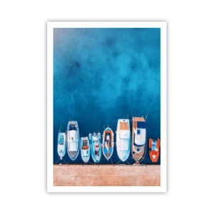 Quadro su tela - Stampe su Tela - Barche ormeggiate sulla riva contro l'acqua blu - 70x100cm - In una fila - Decorazione murale moderna per soggiorno e camera da letto ARTTOR