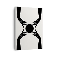 Quadro su tela - Stampe su Tela - Mani nere in una composizione simmetrica con una palla - 50x70cm - Segno misterioso - Decorazione murale moderna per soggiorno e camera da letto ARTTOR