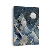 Poster - Montagne geometriche nei toni del blu navy e dell'oro - 50x70cm - Paesaggio geometrico - Decorazione murale moderna per soggiorno e camera da letto ARTTOR