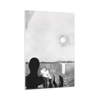 Poster - Donna appoggiata a una figura in ombra, luna e cascata - 50x70cm - Sempre un mistero - Decorazione murale moderna per soggiorno e camera da letto ARTTOR