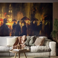 Fotomurali Autoadesivo Deluxe Sticker - Gli adoratori della pioggia - Città, Persone, Ombrello - 500x350 cm