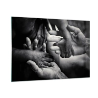 Quadro su vetro - Stretta di mano simbolica in bianco e nero di diverse generazioni - 100x70cm - Umanità - Decorazione murale moderna per soggiorno e camera da letto ARTTOR
