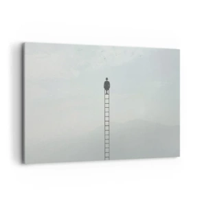 Quadro su tela - Stampe su Tela - Un uomo su una scala che sale verso il cielo - 100x70cm - Innalzati al di sopra - Decorazione murale moderna per soggiorno e camera da letto ARTTOR