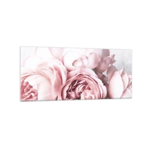 Quadro su vetro - Peonie rosa in luce soffusa su uno sfondo chiaro - 120x50cm - Per i romantici - Decorazione murale moderna per soggiorno e camera da letto ARTTOR