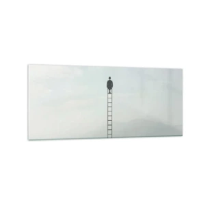 Quadro su vetro - Un uomo su una scala che sale verso il cielo - 120x50cm - Innalzati al di sopra - Decorazione murale moderna per soggiorno e camera da letto ARTTOR