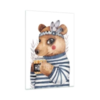 Quadro su vetro - Un orsacchiotto con un maglione a righe con una tazza di miele - 80x120cm - Dolce orsetto - Decorazione murale moderna per soggiorno e camera da letto ARTTOR