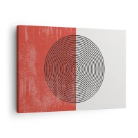 Quadro su tela - Stampe su Tela - Motivo geometrico con cerchi concentrici su sfondo rosso e bianco - 70x50cm - Dritto al centro - Decorazione murale moderna per soggiorno e camera da letto ARTTOR