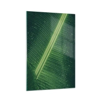 Quadro su vetro - Una foglia verde con gocce d'acqua sulla sua superficie - 70x100cm - La struttura del verde - Decorazione murale moderna per soggiorno e camera da letto ARTTOR